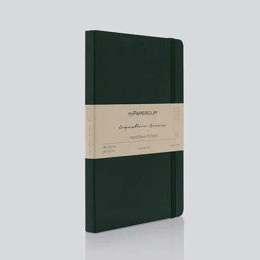 Hand Drawn Vegan Leather Cover with rounded corners, a bookmark & an elastic closure